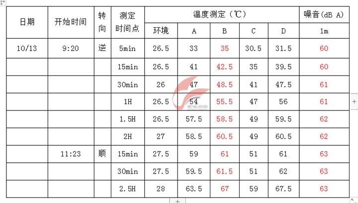 測試過程:減速機(jī)類型:斜齒(加脂量:25g)